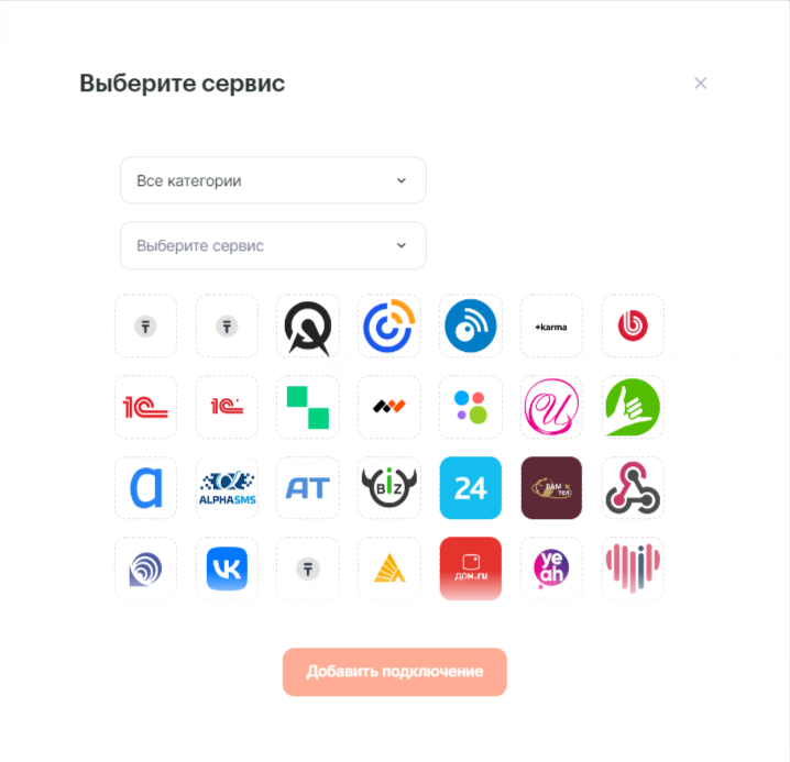 4. В списке доступных сервисов выберите АТС и нажмите кнопку «Добавить подключение».