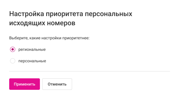 Вы можете настраивать приоритет подстановки персональных и региональных номеров при исходящих звонках в зависимости от ваших задач. Ниже расскажем подробнее обо всех настройках АОН.
