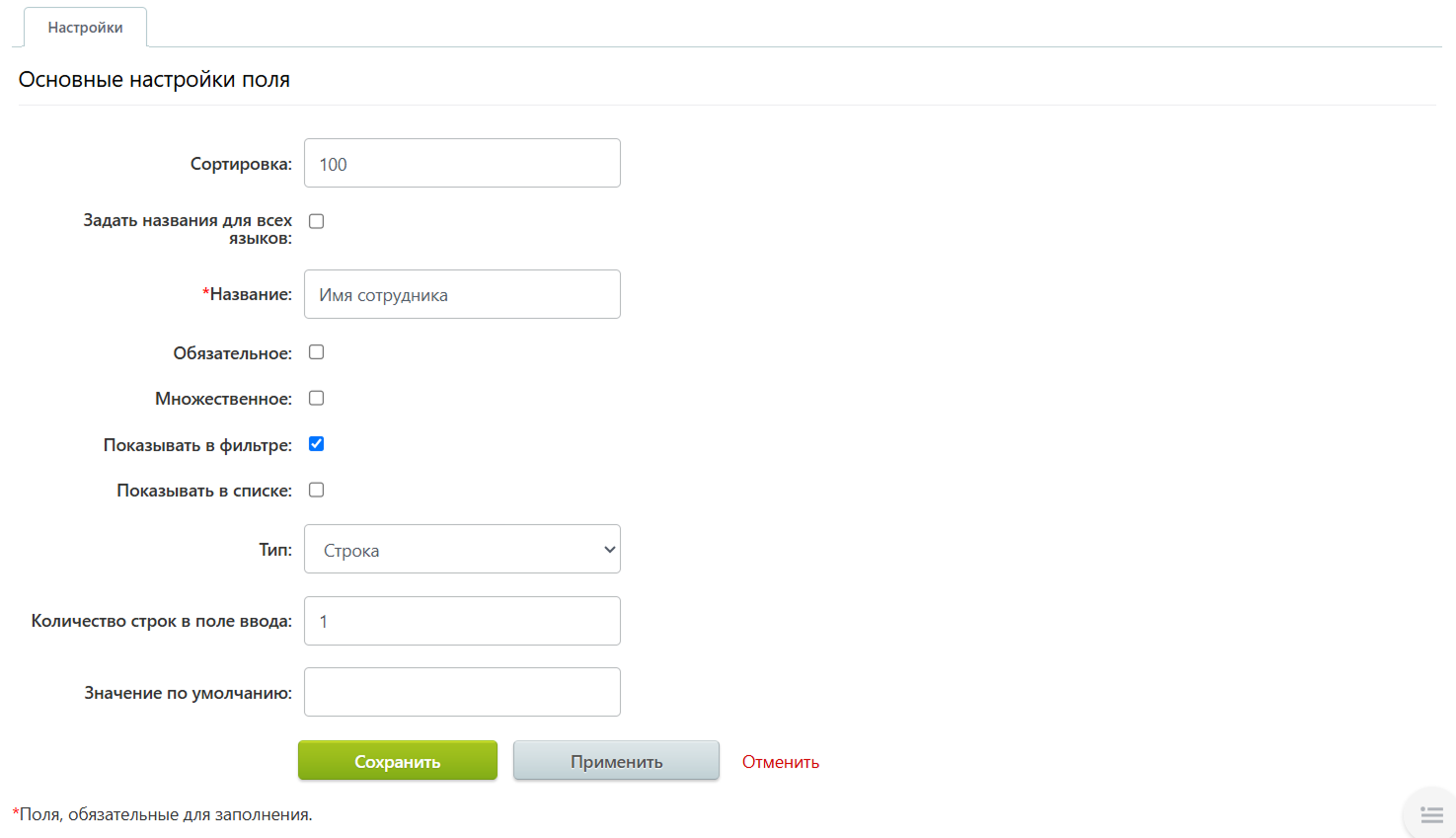Далее рассмотрим каждый пункт подробнее на примере настроек карточки лида Для сделки и контакта настройка происходит аналогично.