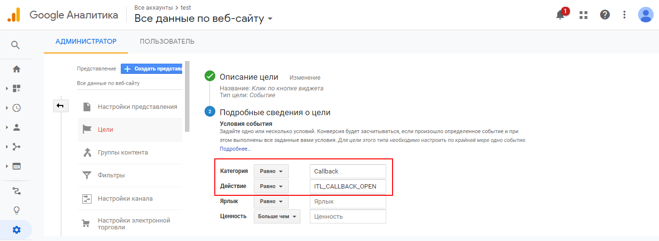 Подключение Google Analytics к виджету обратного звонка с сайта