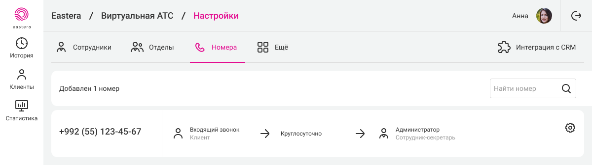 Шаг 1. Настройка сотрудника и номера в АТС для переадресации