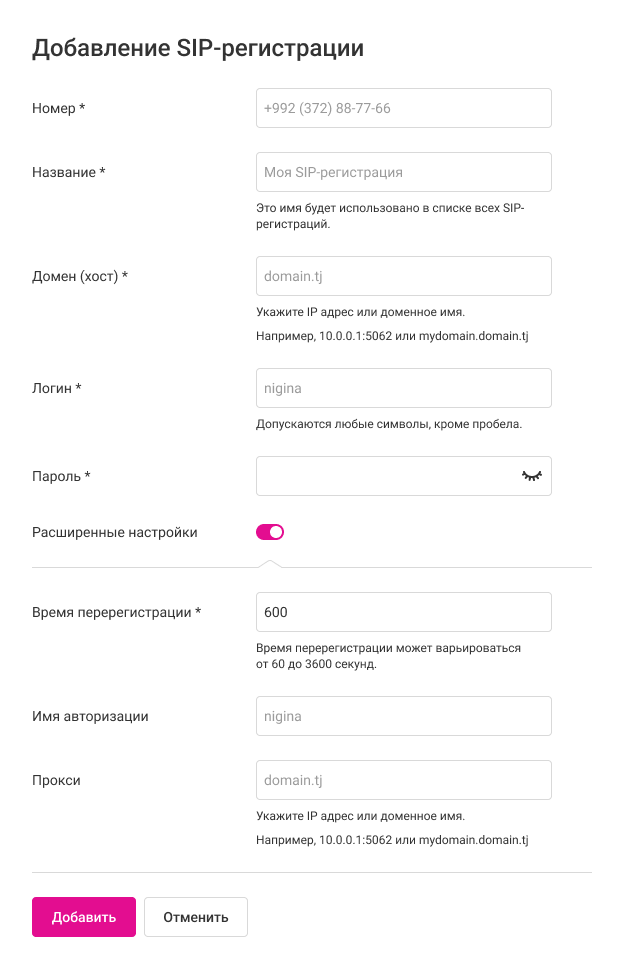 Шаг 2. Настройка SIP-регистрации в calltracking.ru
