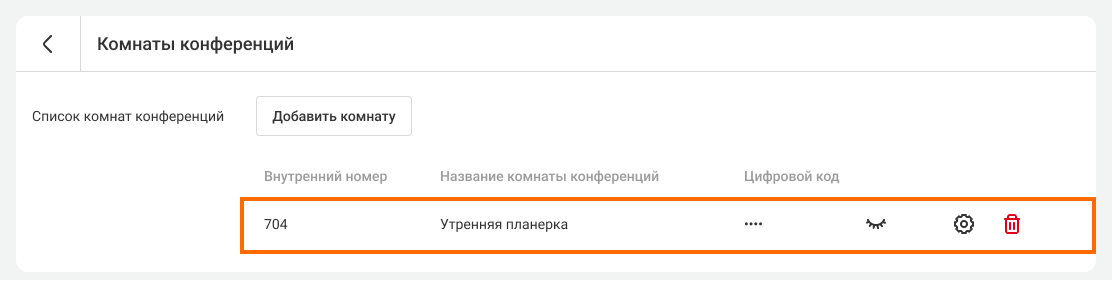 Готово. Теперь вы можете увидеть созданную комнату конференций в списке комнат.