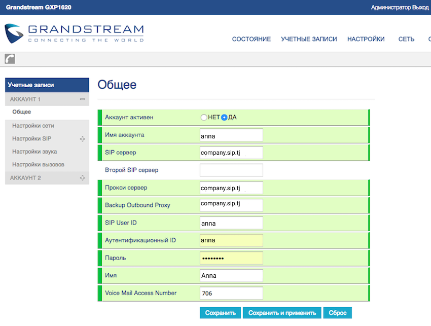 Инструкция по настройке телефонов Grandstream (модели серии GXP)
