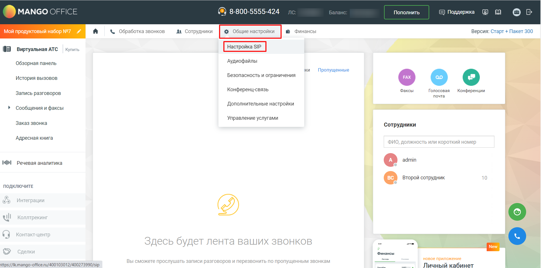 Далее в разделе «Общие настройки» откройте «Настройка SIP».