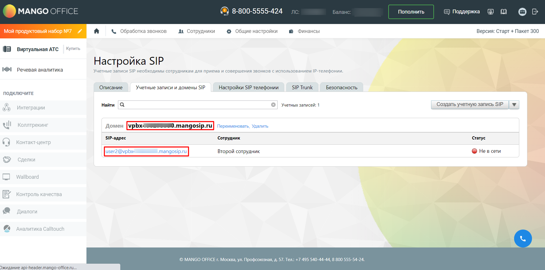 Далее перейдите в учетную запись, которая будет использоваться для подключения/переадресации звонков в АТС. Обратите внимание: проверьте настройку переадресации всех звонков на сотрудника, учетная запись которого будет использоваться для подключения/переадресации звонков в АТС.