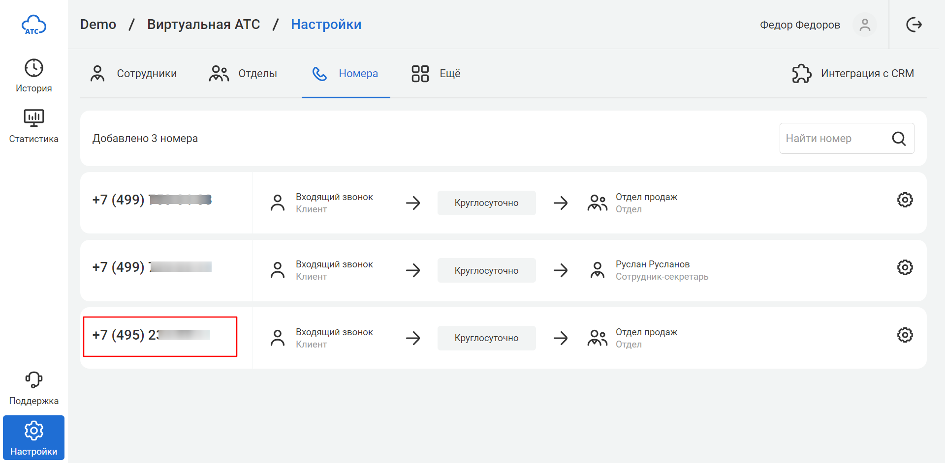 Подключенные номера отобразятся в разделе «Номера».
