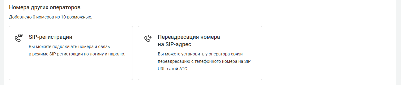 Функция предоставляется без дополнительной платы. Вы можете подключить до 30 внешних номеров. Для расширения лимита обратитесь в поддержку.