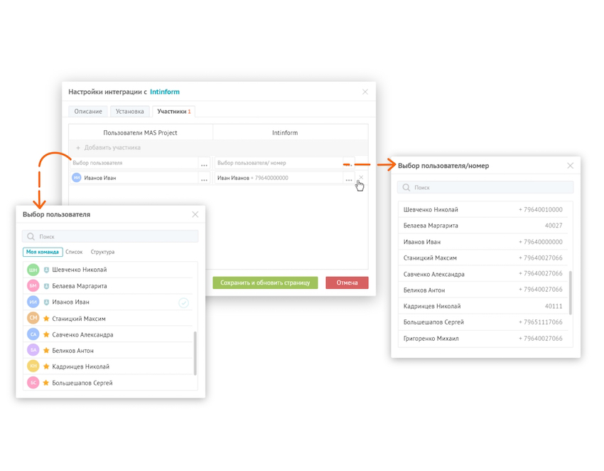 7. Для того, чтобы идентифицировать сотрудников, вам необходимо сопоставить пользователей Виртуальной АТС с пользователями MasProject.