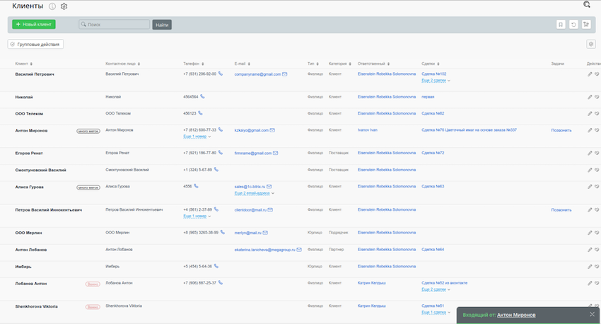 2. Все звонки фиксируются в карточке клиента