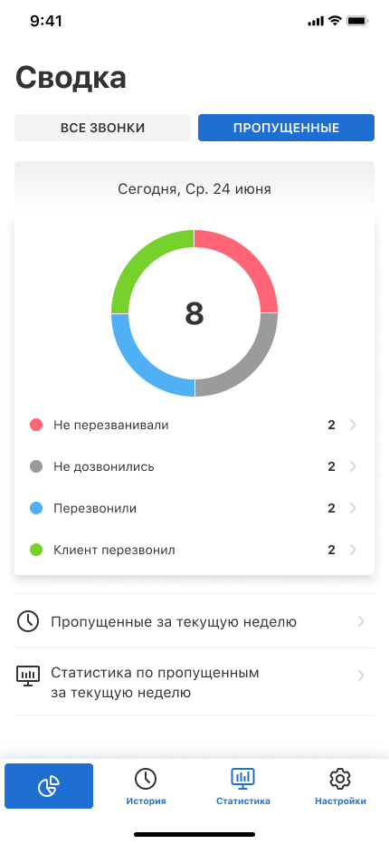 • анализировать статистику звонков и быстро реагировать на пропущенные.