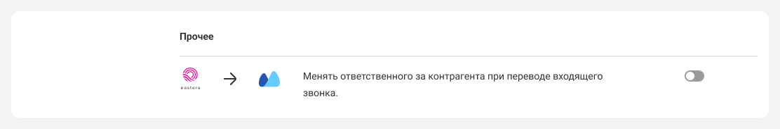 Кроме того, вы можете включить автоматическую смену ответственного за контрагента при переводе входящего звонка в разделе «Прочее».