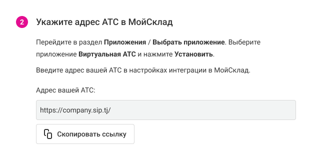 2. Скопируйте адрес вашей Виртуальной АТС.