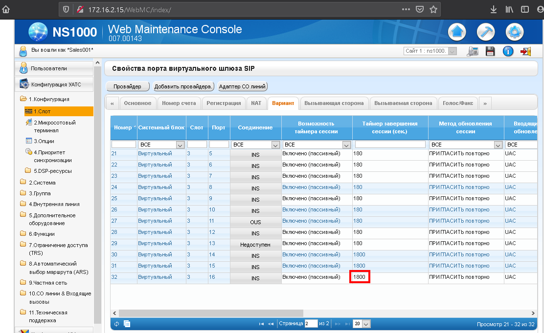В боковом меню выберите «Конфигурация УАТС» → «Конфигурация» → «Слот». Вам откроется таблица во вкладке «Основное». В столбце «Атрибут канала» выставите Основной канал.