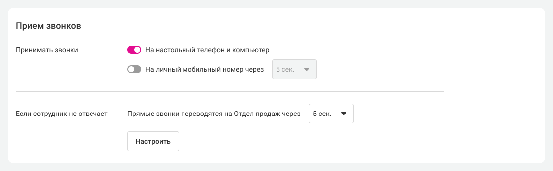 Настройки переадресации в интеграции с CRM и в профиле сотрудника