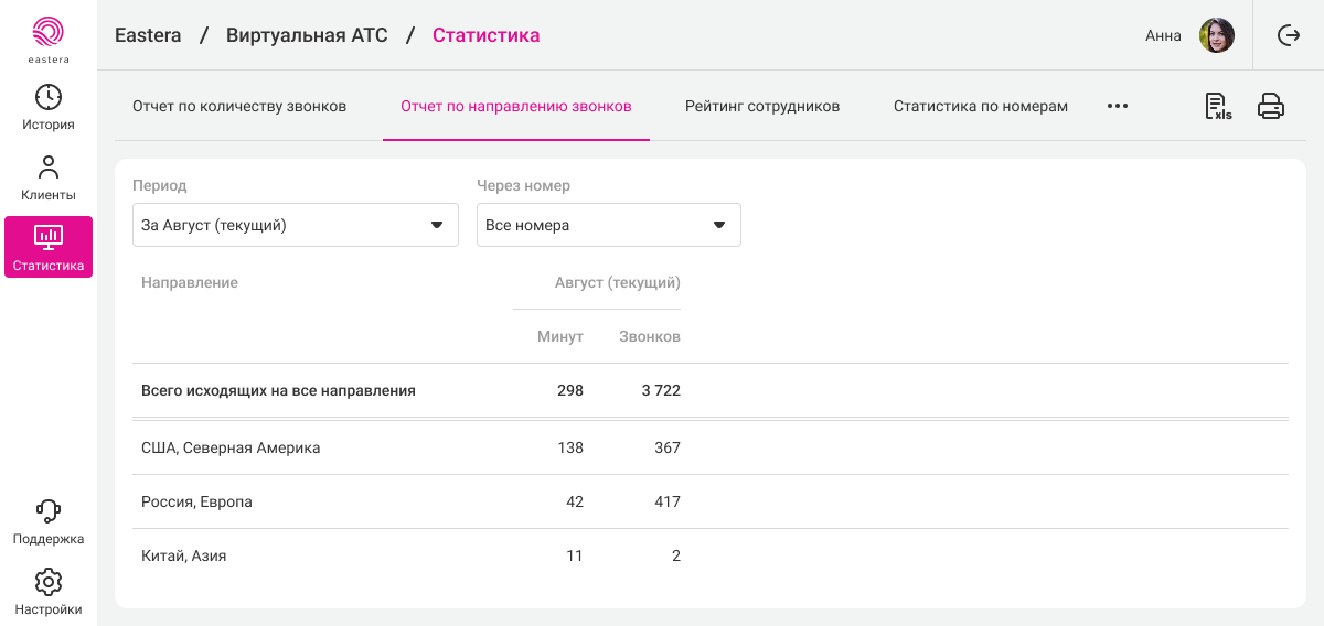 АТС оставляет возможность выбирать для анализа одновременно и группы номеров, и отдельные номера из этих групп. В таком случае общее количество звонков на выбранные номера и группы номеров будет искажено – звонки на номер, входящий в группу, будут учтены дважды. Будьте внимательны и настраивайте отчет «Статистика по номерам» правильно.
