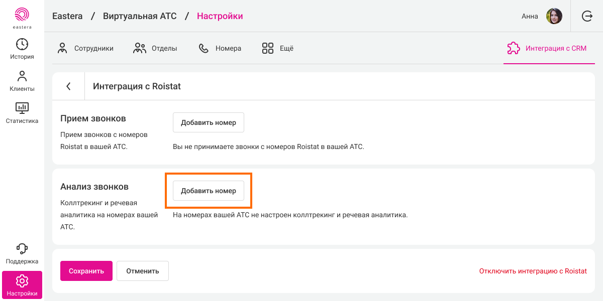 Если вы подключили номера в Roistat, свяжите их с номерами Виртуальной АТС. Вы сможете анализировать звонки с номеров Roistat в Истории и Статистике ВАТС, а за переадресацию таких звонков на ваши мобильные телефоны платить не придется.