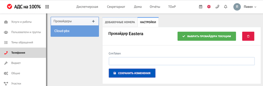 - Адрес вашей CRM — вставьте ссылку: https://dispatch.roskvartal.ru/api/telephony/eastera.
