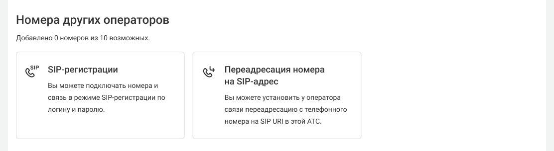 Подключение номеров других операторов