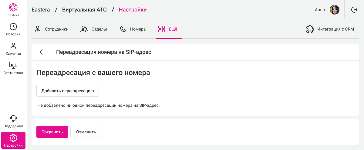 1. В разделе «Еще» перейдите в «Переадресация номера на SIP-адрес» и в разделе нажмите «Добавить переадресацию».