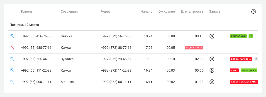 Если в вашей АТС настроены и Речевая аналитика, и интеграция с amoCRM, вы сможете усилить контроль за работой менеджеров, а именно: