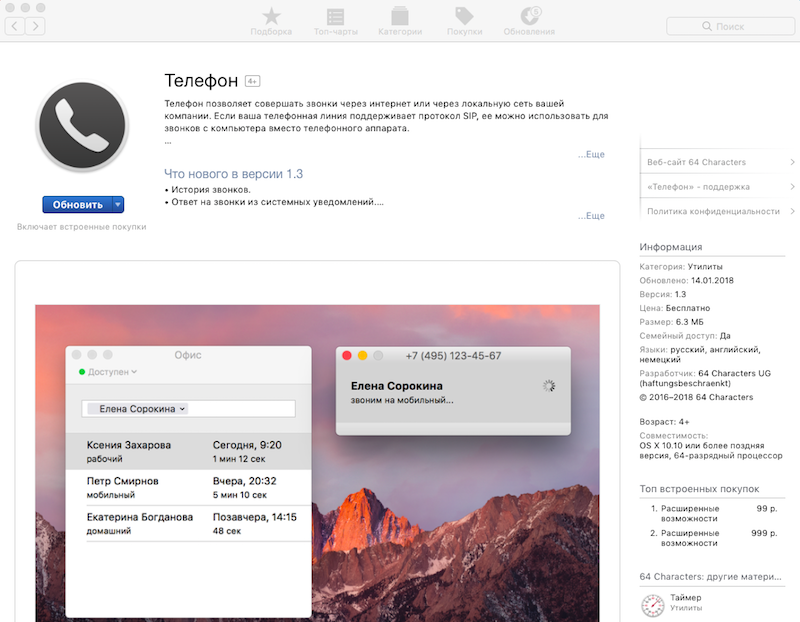Коммуникатор Телефон – программный телефон (софтфон) для вашего Mac. Он полностью заменяет настольный телефон.