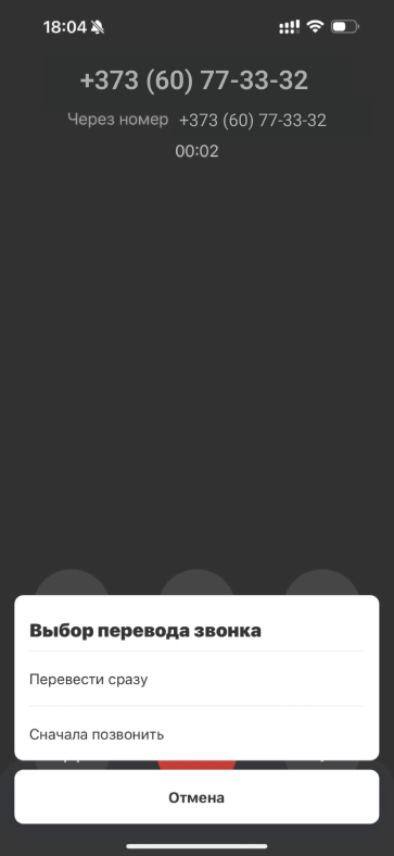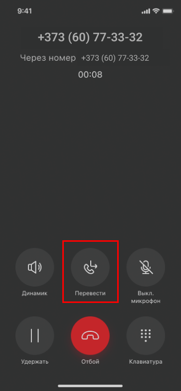 Чтобы перевести звонок в мобильном приложении :