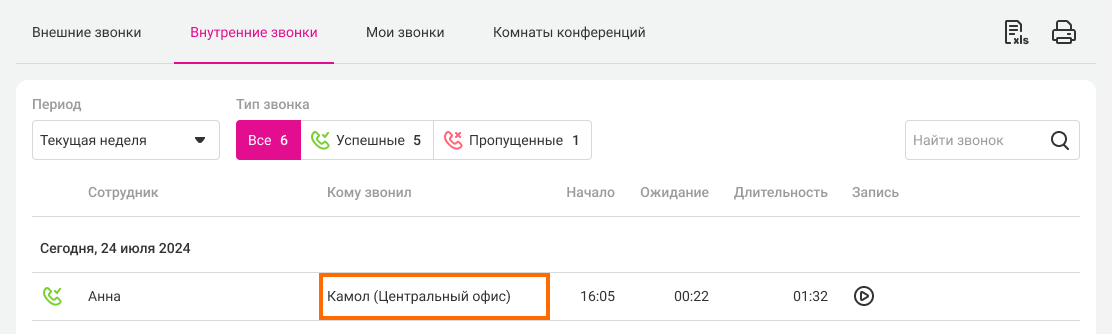 Все, теперь вы можете совершать и переводить звонки по коротким (внутренним) номерам между Виртуальными АТС. Такие вызовы будут отображаться в Истории на вкладке Внутренние вызовы, и их можно будет прослушать. В колонке «Кому звонил» в скобках будет указано название филиала, к которому относится менеджер.