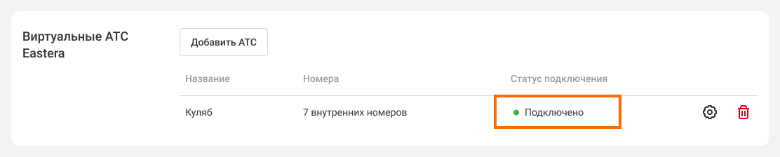 - Название — название той АТС, которую хотите добавить. Для удобства можете вписать название филиала или город.