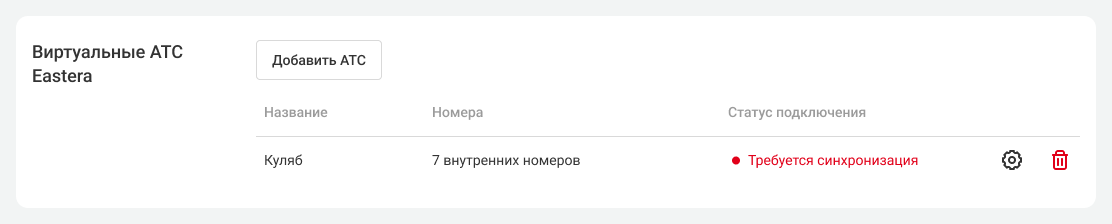 Если автосинхронизация не произошла, в настройках подключения к другой АТС появится кнопка «Синхронизировать». Нажмите ее, чтобы выполнить синхронизацию вручную.