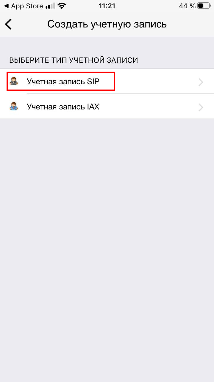4. Выберите SIP account.