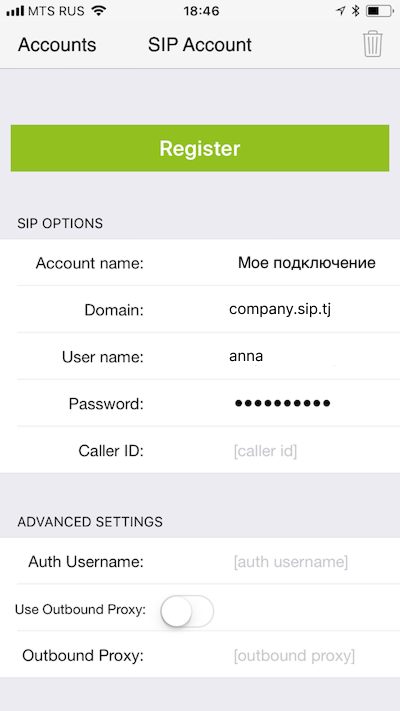 Настройка приложения на iPhone