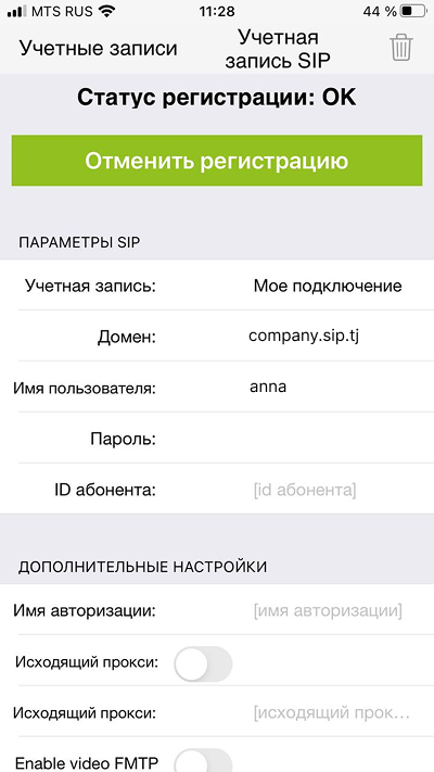 6. Если вы все сделали правильно, вы увидите надпись «Статус регистрации: OK» — ваша учетная запись зарегистрирована.