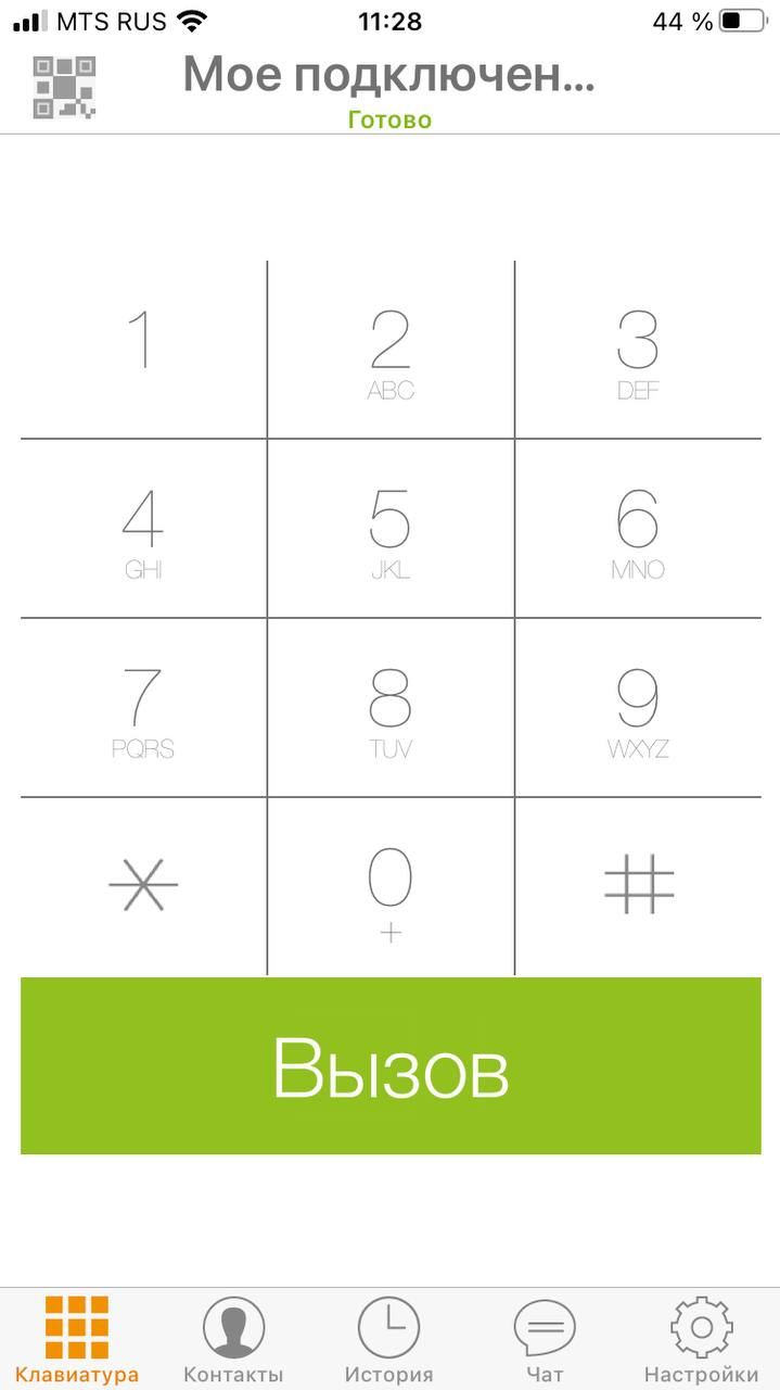 7. Теперь вы можете принимать и совершать вызовы. Для этого перейдите в раздел «Клавиатура» или «Контакты».